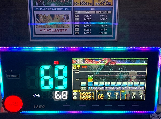 「パチスロ 革命機ヴァルヴレイヴ」は15時の時点で複数台の出玉が5,000ptを超え、すでに16,000pt以上となっている台もあった。