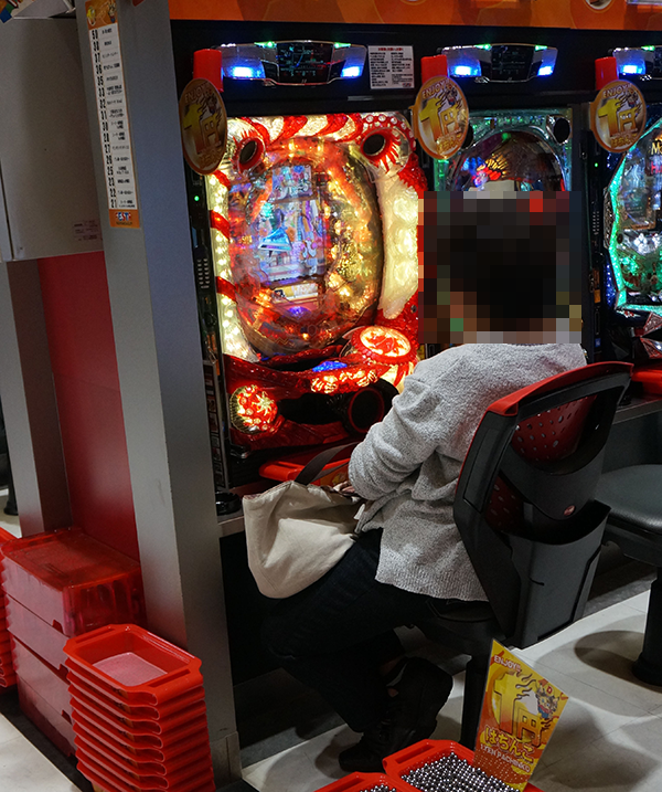 15時ごろの4円パチンコでは、「パチンコCR化物語」や「CRフィーバー真花月」に遊技を楽しんでいるプレイヤーの姿があった。