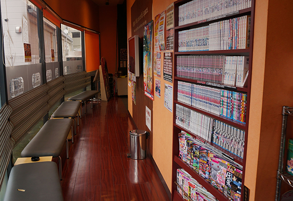 漫画本やテレビが用意されているレストコーナーも魅力的なスポットのひとつ。利用しているプレイヤーも多かった。