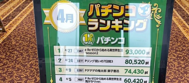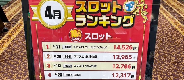 取材日はゴールデンウイークの最終日。そのためか朝から多くのファンで店内は大賑わいとなった。着席率は間違いなく高かったのだが、出玉面ではどうだったのだろうか。連休中でも、上に掲げたランキングのような出玉を拝むことができれば嬉しい限りなのだが…。