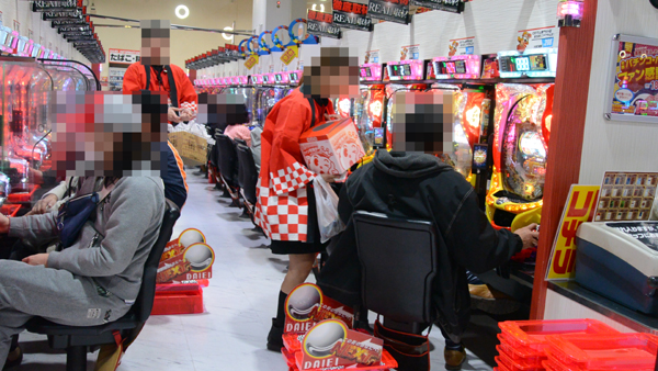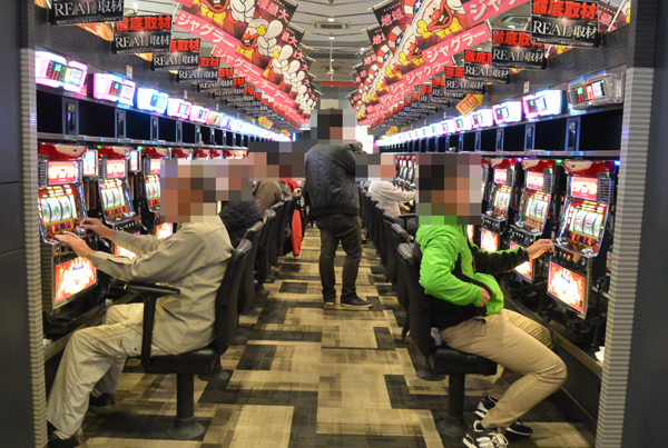 1円パチンコ、5円スロット、2円スロットという低貸しコーナーはいずれも空台がほとんど見当たらない状況。プレイヤーの年齢層は幅広く、アットホームな雰囲気となっていた。