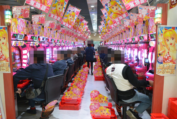 4円パチンコでは、「CR牙狼 魔戒ノ花」や「CRスーパー海物語IN沖縄4」をはじめとした海物語シリーズが大盛況。どちらの機種も華やかな装飾が施されていて、シマ全体が楽しげな雰囲気に包まれていた。