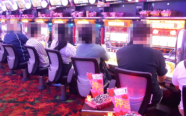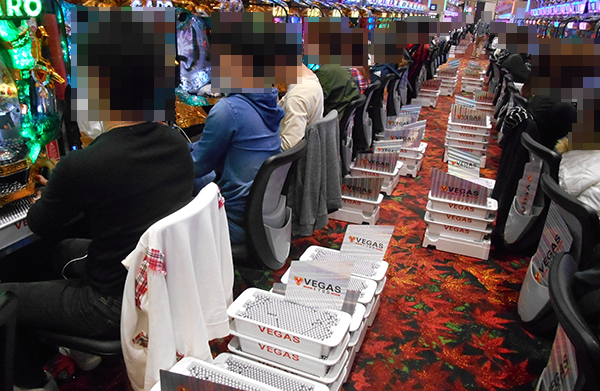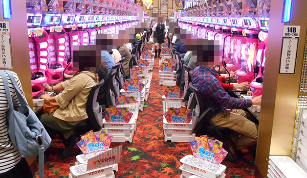 パチンコ・パチスロともに大きなにぎわいをみせていた「ベガス1700枚方店」。プレイヤーの輝くような笑顔がホールの魅力をハッキリとあらわしているようであった。