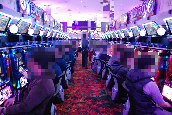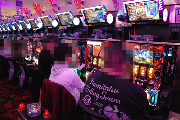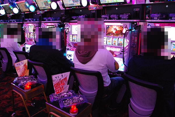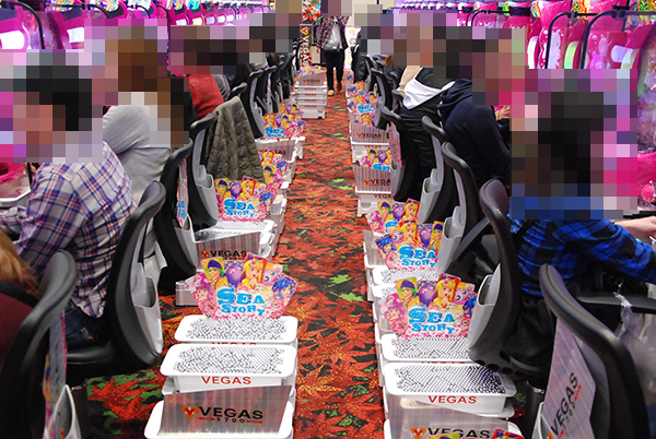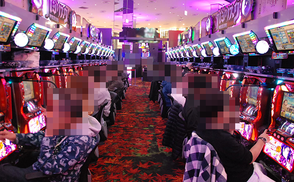 午後の20円パチスロのなかでもっとも目立っていたのが、「バジリスク~甲賀忍法帖~絆」と「沖ドキ!」。機種の性能を最大限まで引き出せているようなプレイヤーが多く、華やかな空間となっていた。