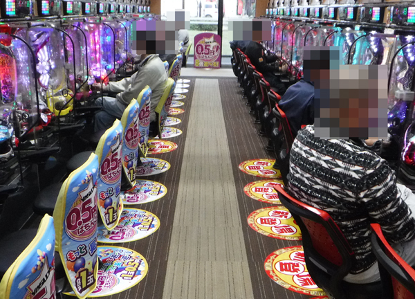 0.5円パチスロ、1円パチンコ、5円スロットの低貸しコーナーも盛況で、明るい雰囲気に包まれていた。