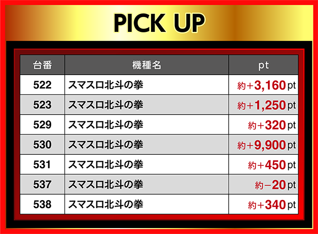 『スマスロ北斗の拳』の530番台が約+10,000ptクラス!!