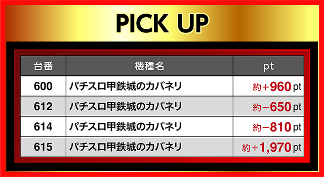 522番台は約+3,160pt、523番台も約+1,250ptと、好結果を残す台が複数あった。