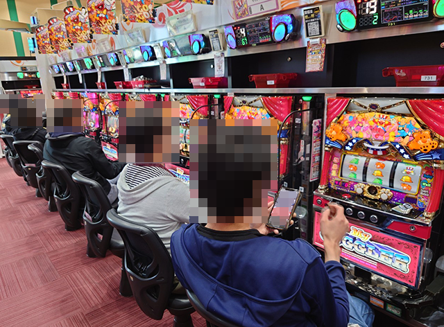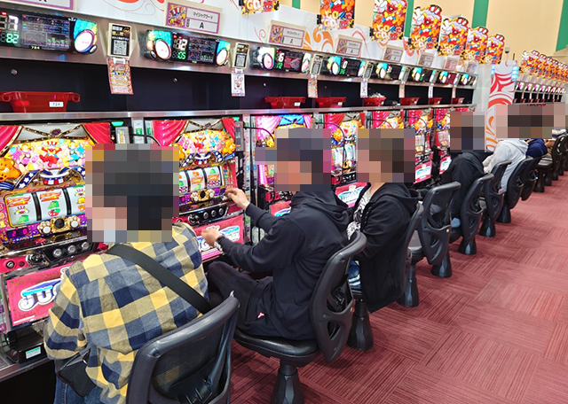 スマスロからボーナスタイプまで、多彩な機種が楽しまれており、大きなにぎわいをみせていた。