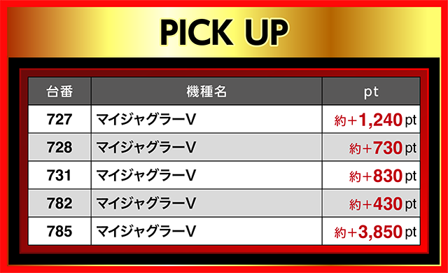『マイジャグラーⅤ』の785番台は約+3,850pt、727番台も約+1,240ptを記録!!