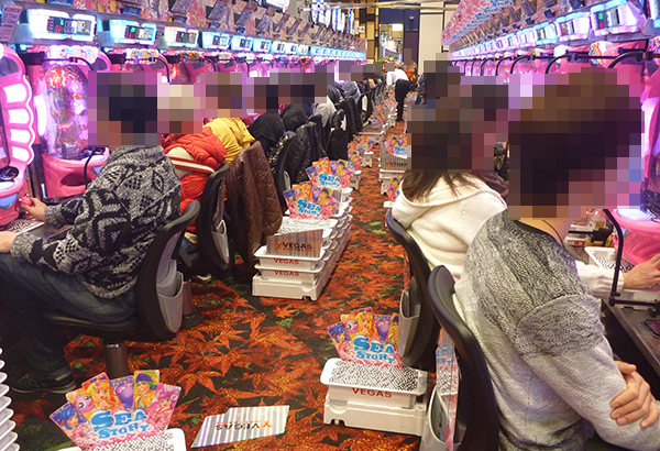ジャグラーシリーズやハナハナシリーズといったボーナスタイプから伝わってくる雰囲気も明るく、しあわせそうなプレイヤーをたくさん確認することができた。