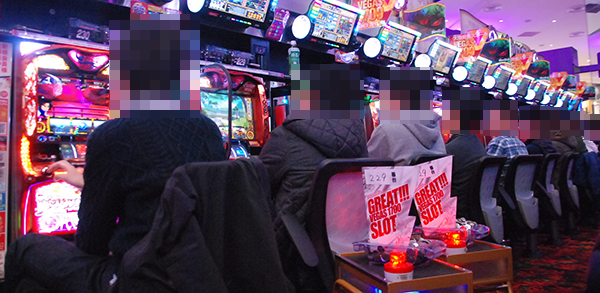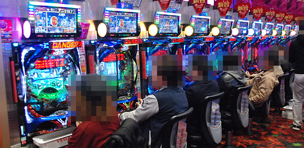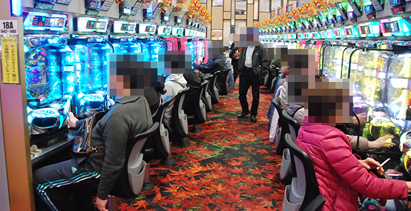 パチスロコーナーをみると、貸し玉料金を問わずに、ほとんどの機種がフル稼働となっていた。