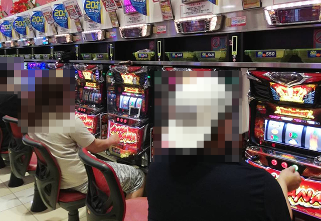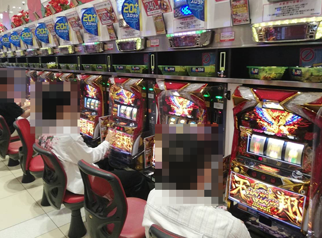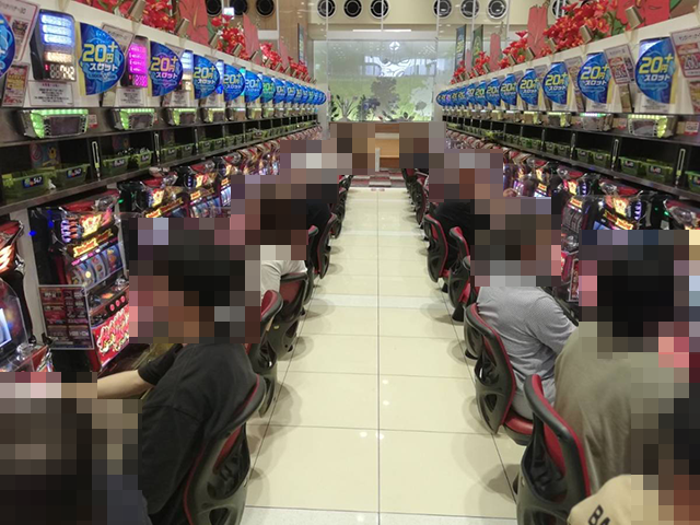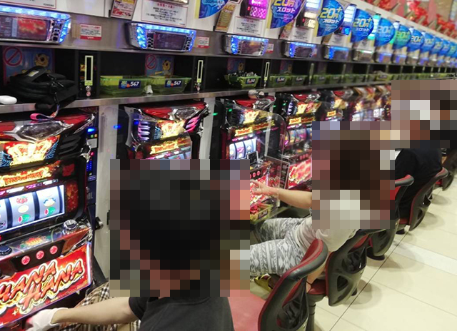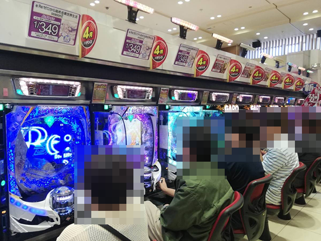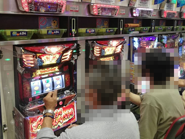 プレイヤーは1箱以上の持ち玉を使い、楽しそうに遊技中。