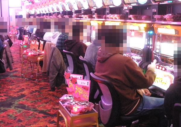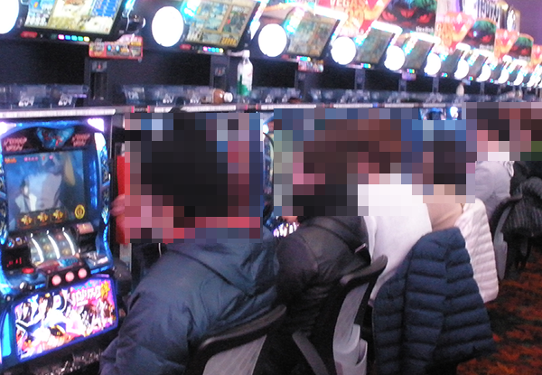 5円パチスロでも、多数のプレイヤーが笑みを浮かべて遊技を楽しんでいた