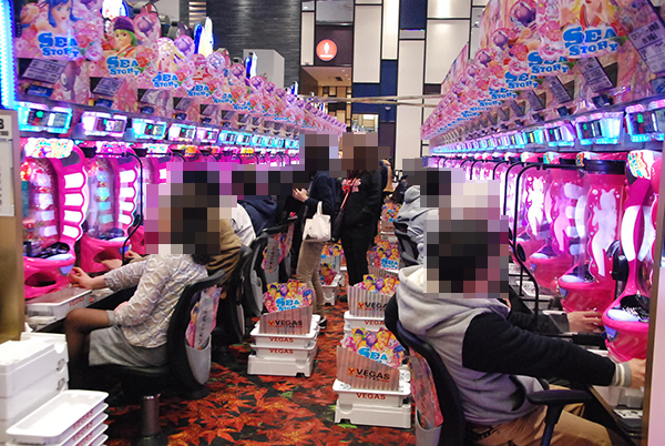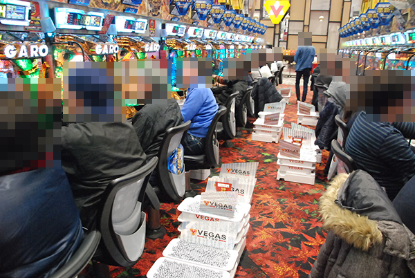 4円パチンコも同様に「CRスーパー海物語IN沖縄4」や「CRぱちんこ GANTZ」など、多くの機種がフル稼働となっていた。