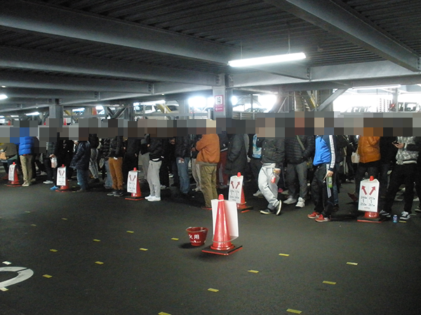 取材日である2月28日は、開店前から600名ちかい人数のプレイヤーが集合。整列場所にできた長い列が、ホールに対する信頼の大きさをあらわしているようだった。