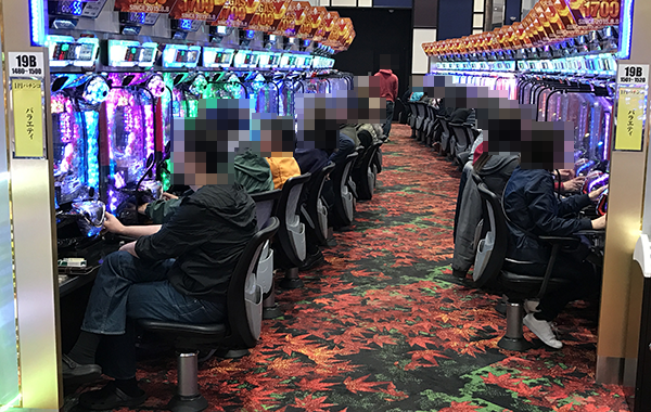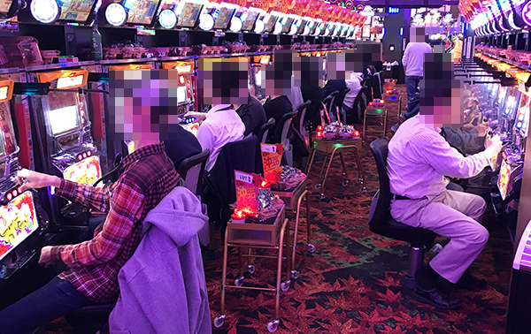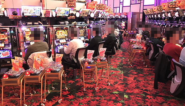 「パチスロ獣王 王者の覚醒」や「鬼浜爆走紅蓮隊 愛」もにぎわっており、遊技を楽しむプレイヤーたちは明るい笑みを浮かべていた。