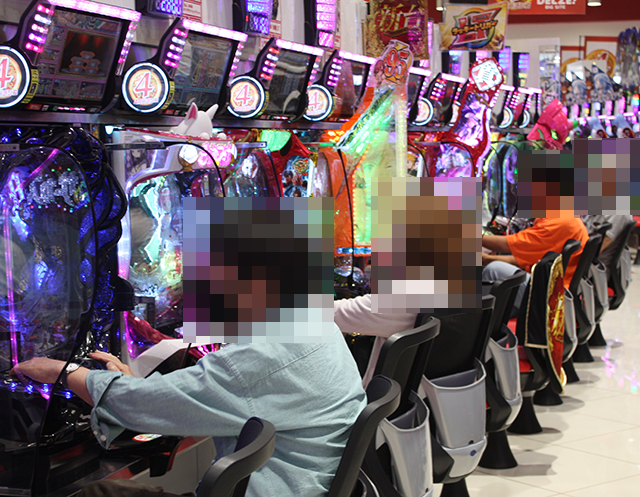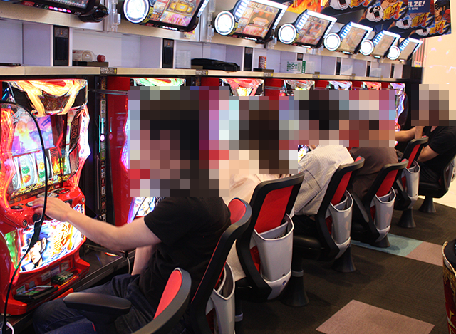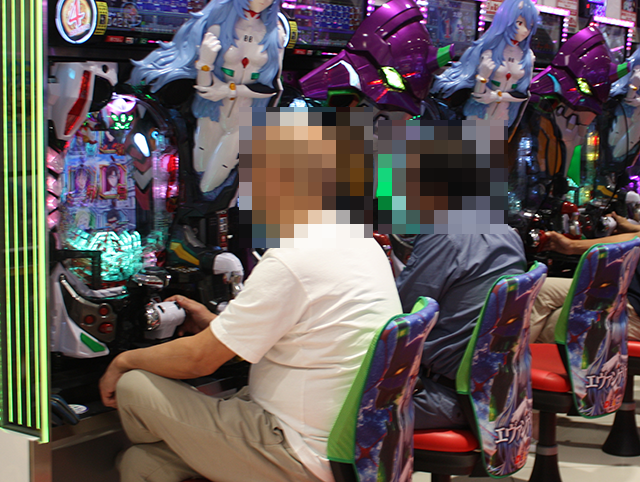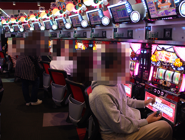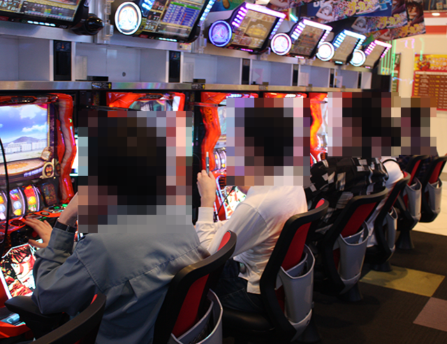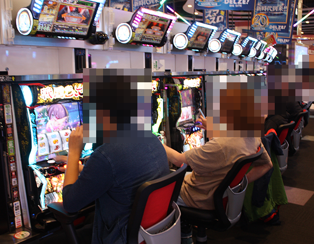 「マイジャグラーⅤ」などに、うれしそうに遊技をおこなっている姿が並んでいた。