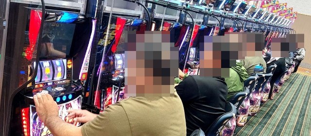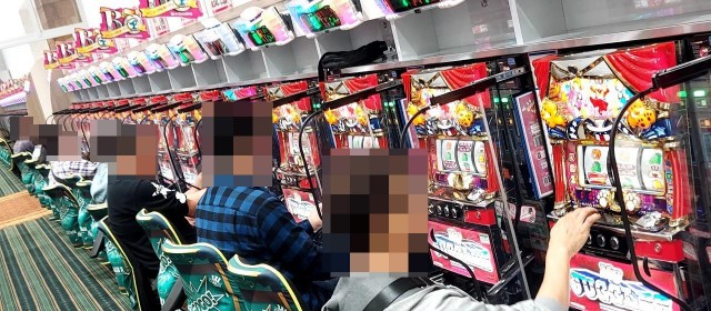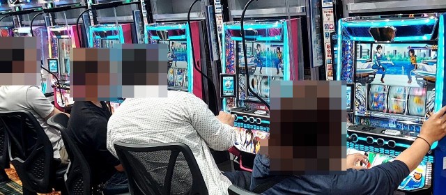 この日高稼働にあったのは『スマスロ北斗の拳』『スマスロ ゴールデンカムイ』『押忍!番長4』『スマスロモンキーターンⅤ』といったスマスロ陣。中には連チャン中の台や出玉を伸ばしている台が見受けられた。