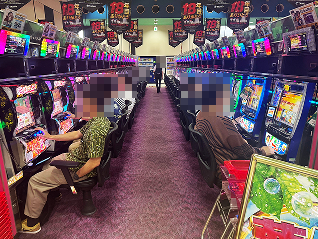 ボーナスタイプの各機種に、楽しそうに遊技をおこなう姿が並んでいたことが印象的だ。