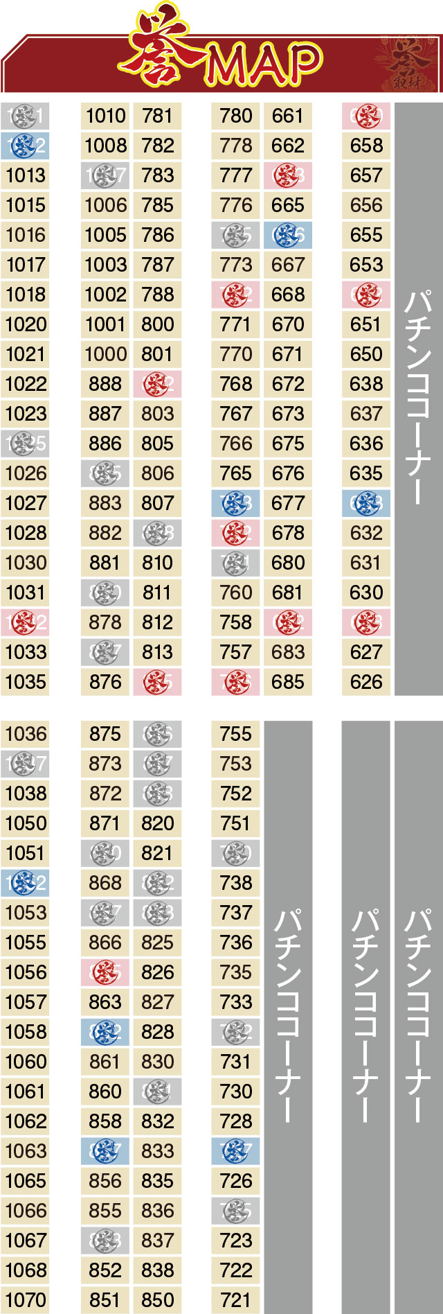 こちらのブロックからは4台の赤誉マーキングが出現!プラス台の多さもさることながら、末尾②の台が多いのはぱちタウン取材班の考えすぎだろうか。