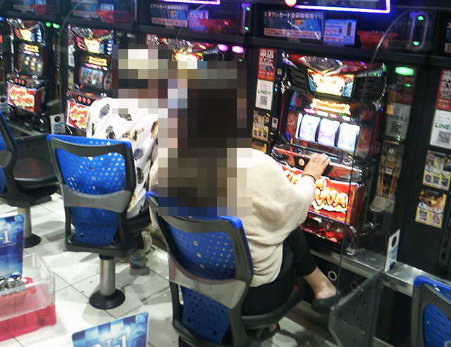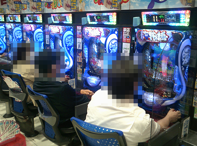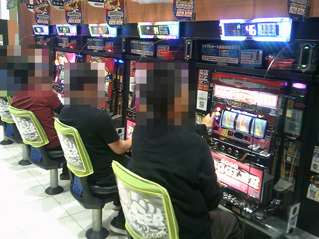 パチスロにおいては、ジャグラーシリーズがとくに人気となっており、プレイヤーたちは楽しそうな様子。