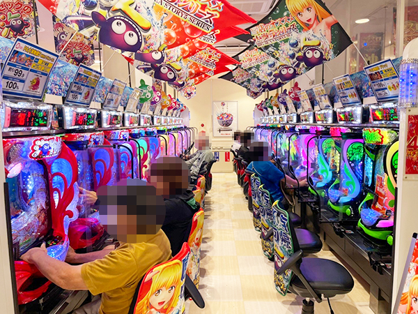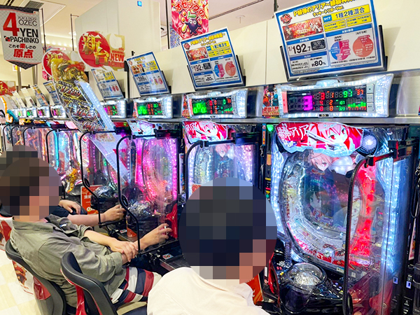 16時ごろの1000円/250玉パチンコを見てみると「e Re:ゼロから始める異世界生活 season2」や「P緋弾のアリア~緋緋神降臨~ラッキートリガーVer.」が好評。プレイヤーたちの満足そうな表情が印象に残っている。