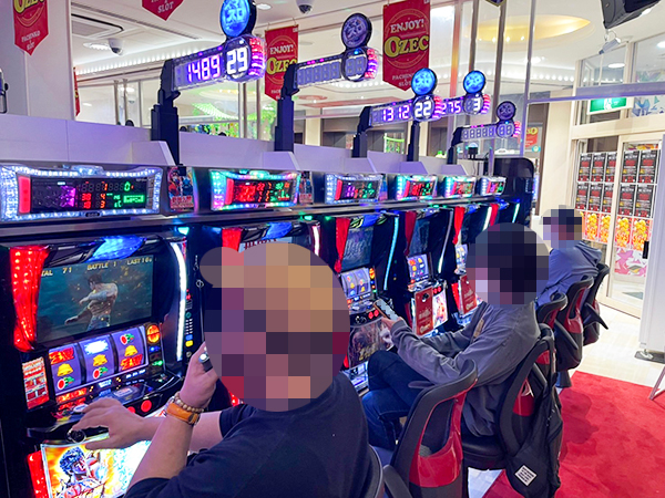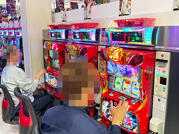 「押忍!番長ZERO」や「マイジャグラーⅤ」、「パチスロ バイオハザード RE:2」も盛況の様子。機種のポテンシャルを上手く引き出すプレイヤーを複数目撃している。