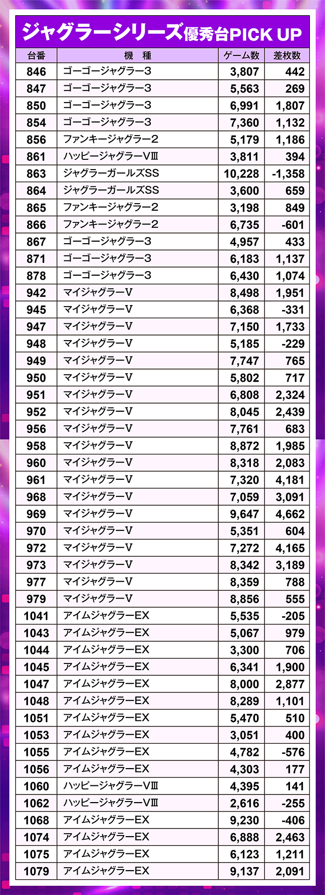 「マイジャグラーⅤ」や「アイムジャグラーEX」などに、1日を通して楽しまれ、キラキラと煌めいている台があった。
