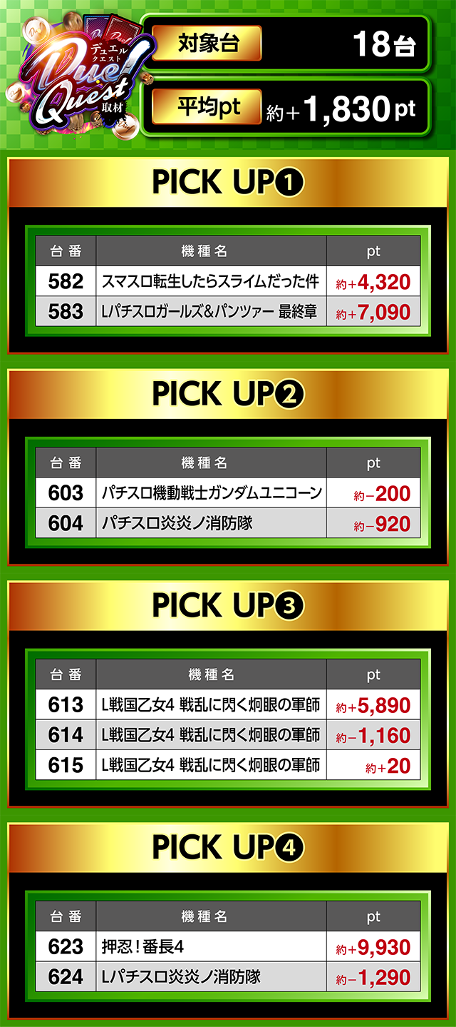582番台の「スマスロ転生したらスライムだった件」と583番台の「Lパチスロガールズ&パンツァー 最終章」には、約+4,320ptと約+7,090ptが続いた。