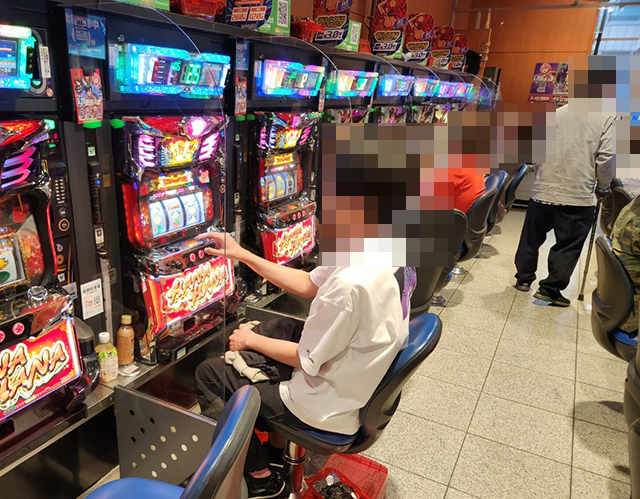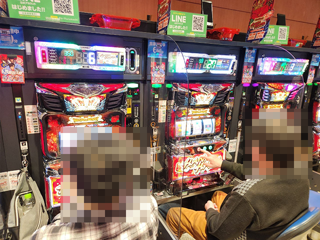 ハナハナシリーズをはじめ、さまざまな機種に笑顔が広がっており、盛り上がりを感じられた。