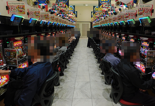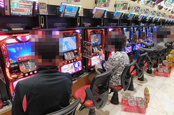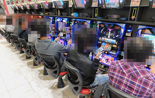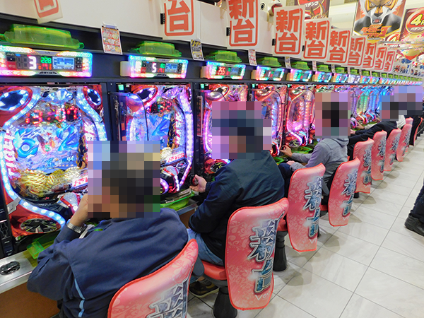 夕方ごろの状況は、20円パチスロの「バジリスク~甲賀忍法帖~絆」や「パチスロ北斗の拳 修羅の国篇」などに、うれしそうなプレイヤーを確認。なかには、朝から楽しんでいるといった姿もみられ、機種の魅力をじっくりと堪能できていたようだ。