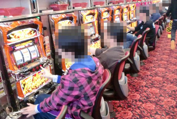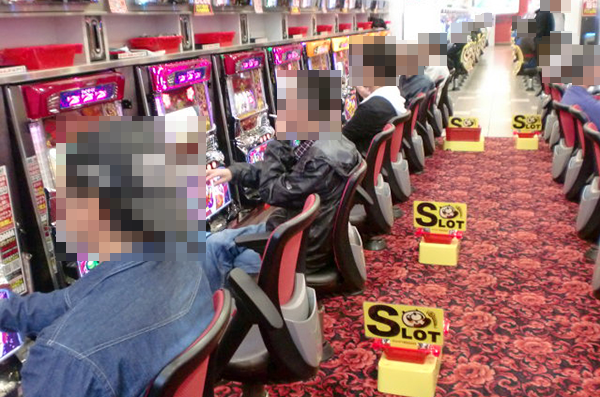 14時を過ぎた頃の4円パチンコでは、「CRスーパー海物語IN沖縄4」が大盛り上がり。目をひくようなパフォーマンスを披露しているプレイヤーが多く、抜群の存在感を放っていた。
