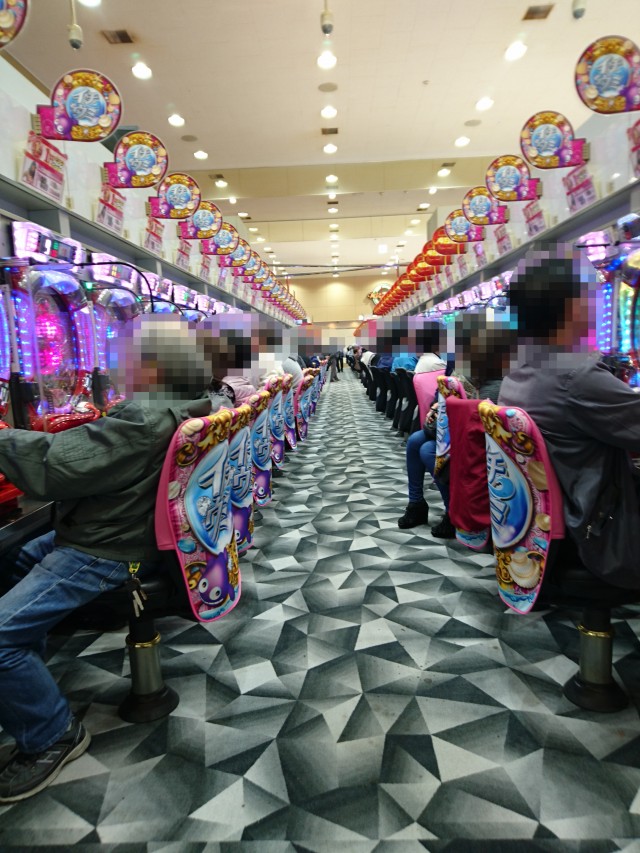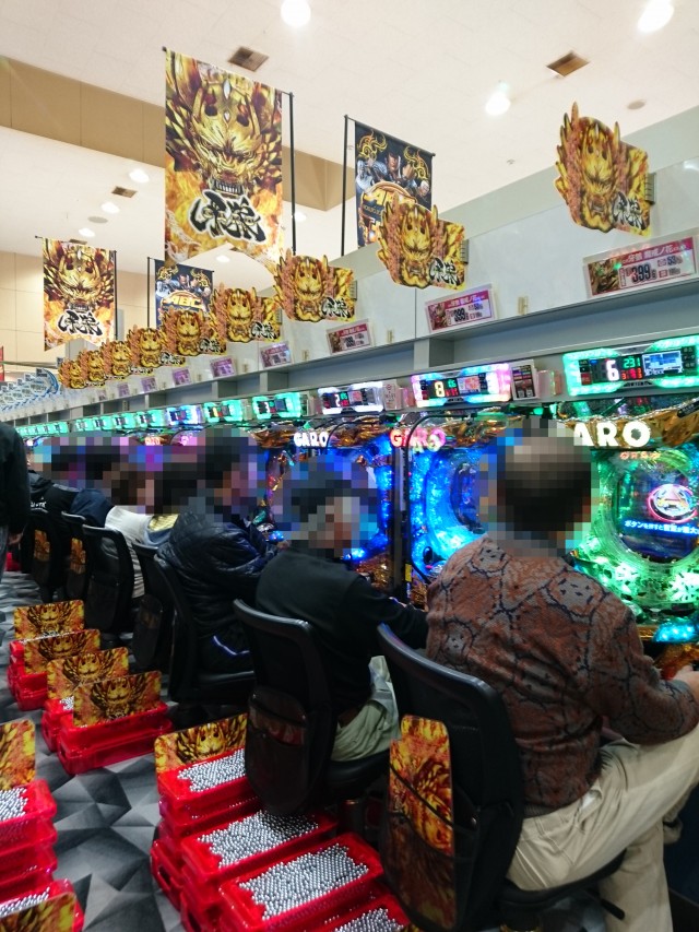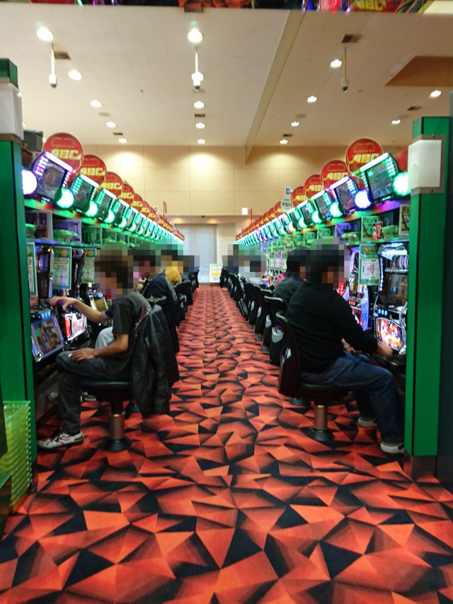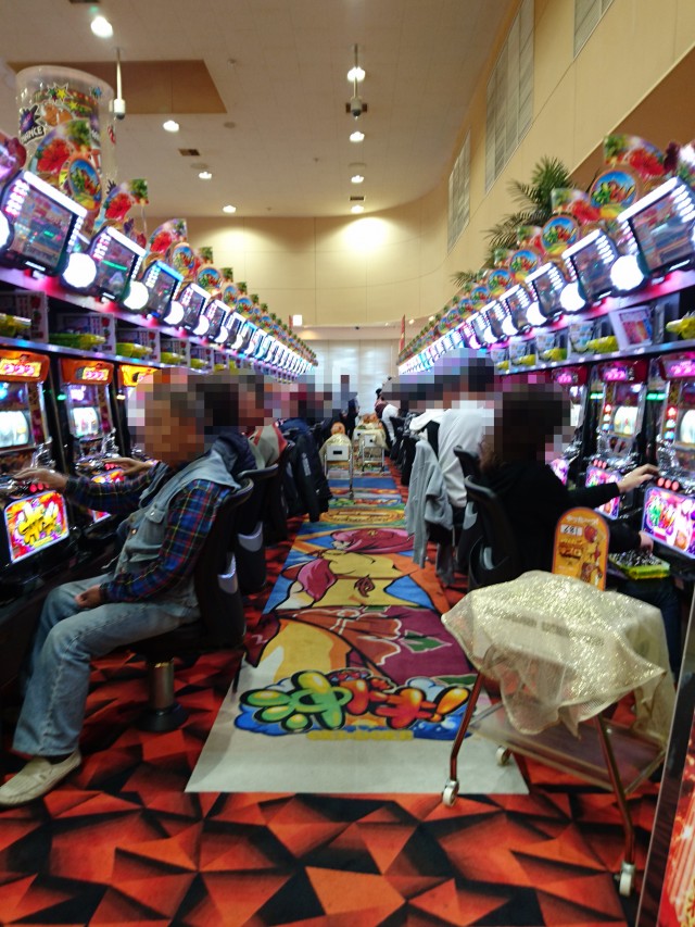 多くのプレイヤーであふれたスロットコーナーは大盛り上がりの様子だった。