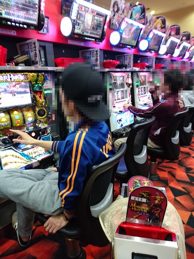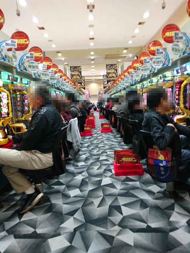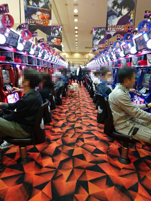 「パチスロ ルパン三世~消されたルパン~」「パチスロ化物語」などの機種で稼働が続き多くのプレイヤーであふれていた。時折笑顔をのぞかせる場面もあり心から遊技を楽しんでいた様子だった。