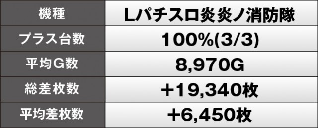前述したように『パチスロ 革命機ヴァルヴレイヴ』『スマスロ北斗の拳』『スマスロモンキーターンV』からは、万枚OVERという凄まじい熱が放たれていた。その盛り上がり具合は各機種の総差枚数を見れば一目瞭然だろう。また『Lパチスロ炎炎ノ消防隊』『パチスロ甲鉄城のカバネリ』も勝率100%を記録しており、特に後者はコイン機でありながらこの結果を残しているため、そのポテンシャルには感服するばかりだ。