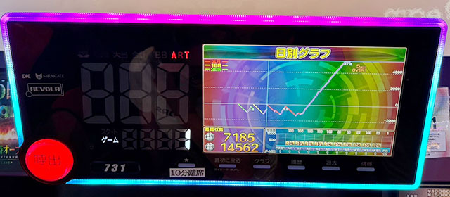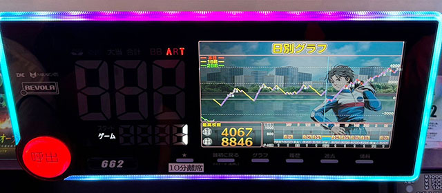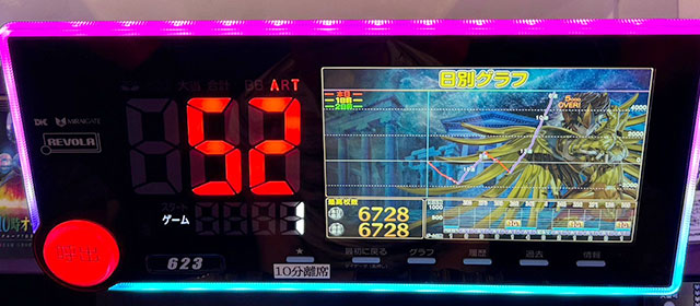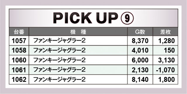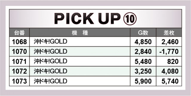 『ファンキージャグラー2』『マイジャグラーⅤ』もノーマル機らしく、回転数と差枚数が比例する展開を披露していた。コンスタントなボーナスはファンに笑顔をもたらし、至福の時間となっていたに違いない。それは『沖ドキ!GOLD』も同様で、1072番台+4,080枚・1073番台+5,740枚と大台突破台を確認でき、こちらもバカンス気分を味わえたはずだ。