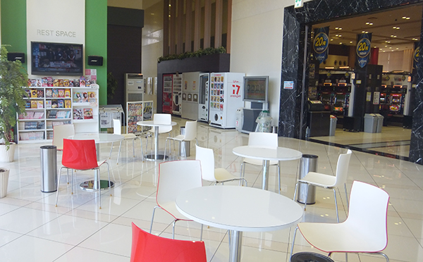 遊技台やレストスペースなど、ホール全体に清掃が行き届いていることにくわえ、マンガ本や食事処といった設備面も充実。