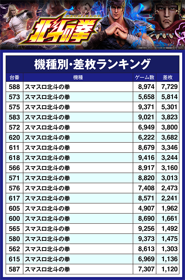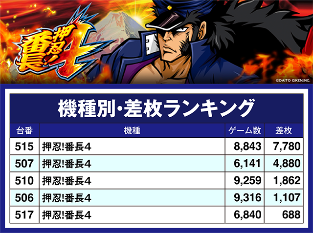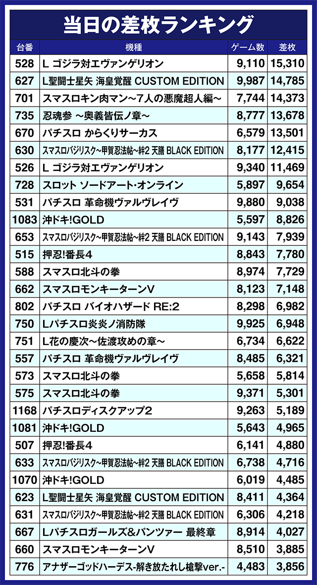 ※なお、本記事中のデータは全てDMMぱちタウンの独自調査によるものです。差枚数順に掲載しています。