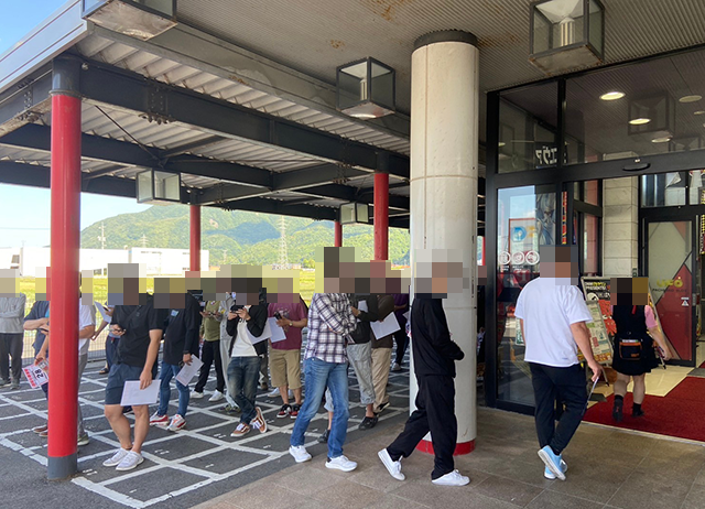 朝イチから大勢のプレイヤーが集まっており、開店前には80名を超える人々が集合。