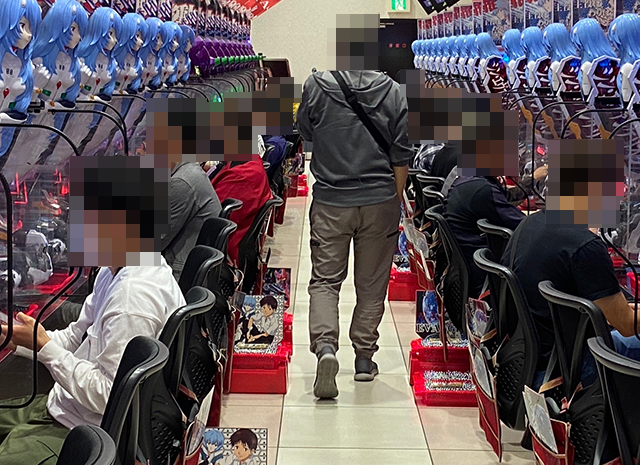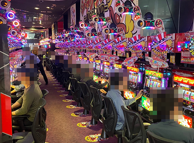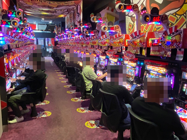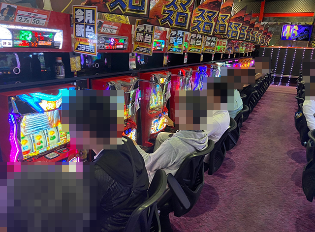 開店直後のパチスロでは、スマスロがとくに人気。続々と台が埋まっていき、複数の機種が満席となっていた。