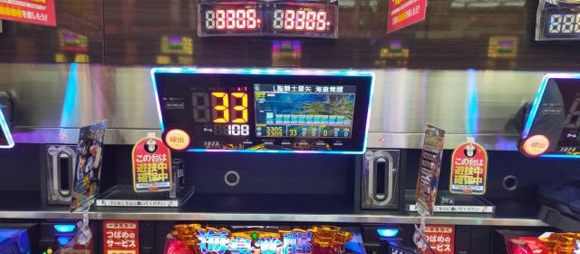 その他、当店の定番機種『沖ドキ!GOLD-30』から4台ほど、ジャグラーシリーズから6台ほど優秀台になるなど、人気機種も抜かりない「英雄のリアル」となった。