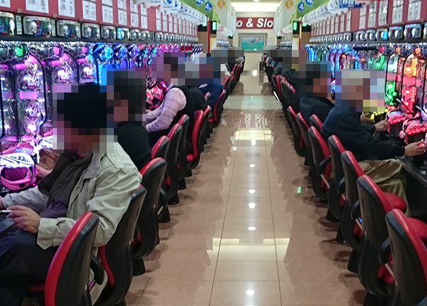 1円パチンコの稼働率も高く、にぎやかな状況。
