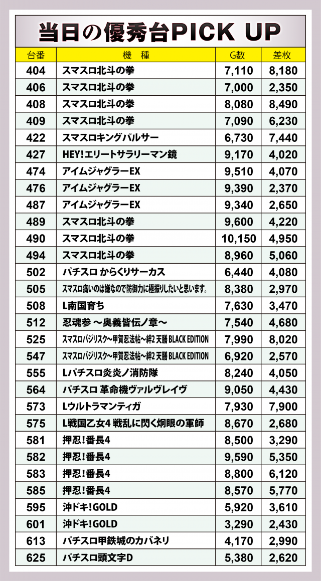 以下、当日の出玉データから優秀台の詳細に迫る。