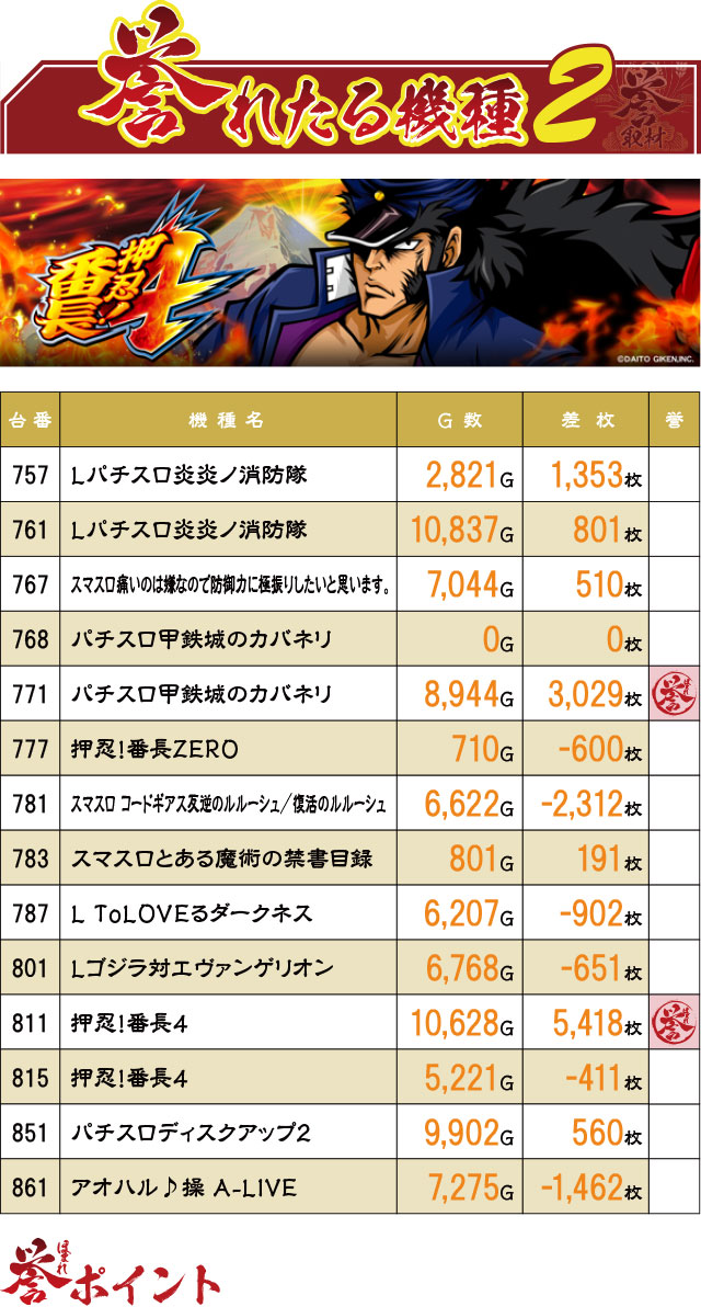 果たして6月13日(木)のパチスロコーナーにて【誉】を見つけることはできたのか?