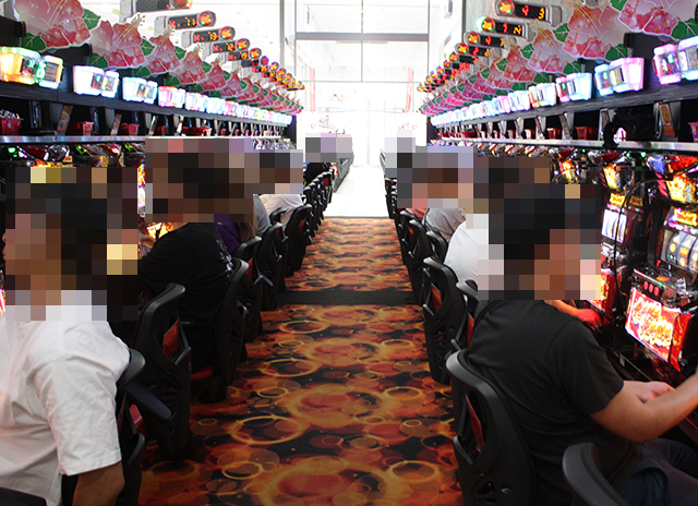 豪腕を披露しているプレイヤーをカメラにおさめるべく、パチスロとパチンコの各シマをまわった。