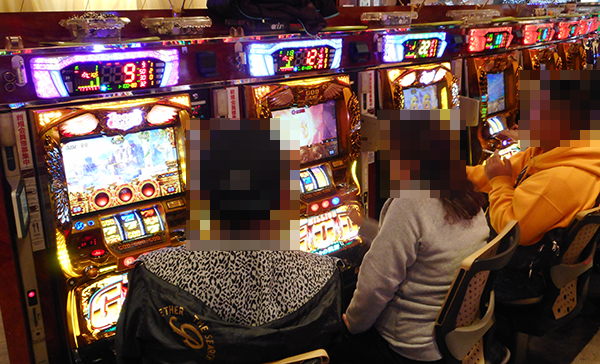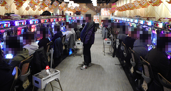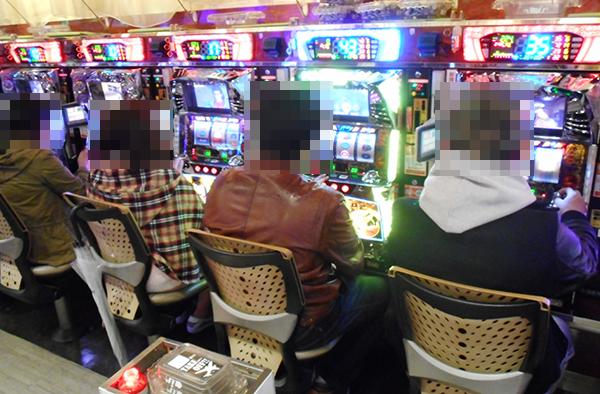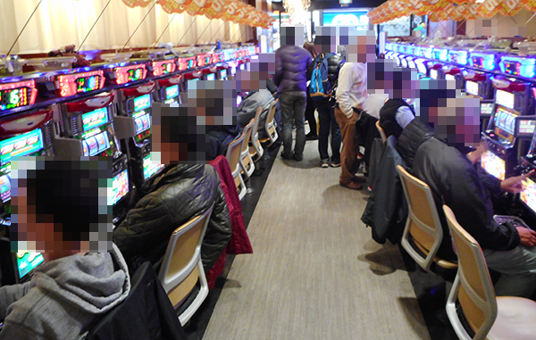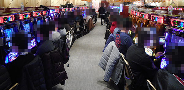 開店直後のホール内の様子をうかがうと、「バジリスク~甲賀忍法帖~絆」やジャグラーシリーズなど、スペックを問わずに多くの機種が満席。