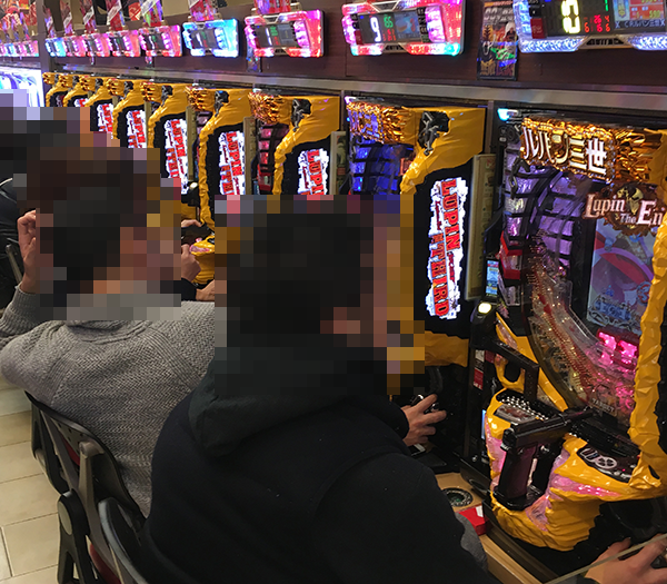 4円パチンコでは、「CR花の慶次X~雲のかなたに~」や「CRルパン三世~Lupin The End~」が盛況。大にぎわいとなっており、あちこちに笑顔がみられた。