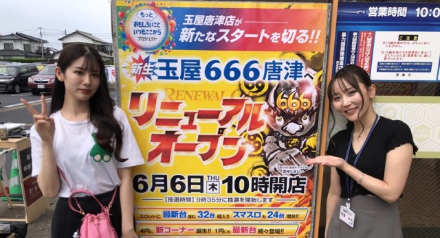6月6日、この日めでたくリニューアルオープンを迎え、店名が「玉屋666唐津」と生まれ変わった同店にて「英雄のリアル」が実施された!朝から集まった260人のファンは大きな期待感を抱いており、勝利を確信していたのが鮮烈だ。DMMぱちタウン「れあこいん」の倉智天彩&花音ののも参戦する中、結果は総差枚数+151,760枚と大勝利。果たしてどのような店内だったのか…さっそく以下から詳細データとともに当日の様子をみていこう!