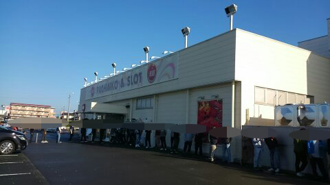 地域最大の695台を設置する大型の人気ホール。朝の並びには200名ものプレイヤーが駆けつけ、開店を心待ちにしている様子だった。
