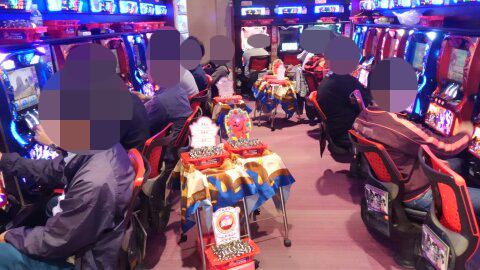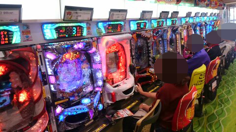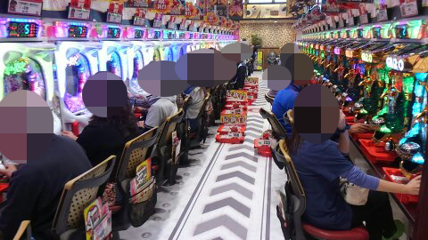 新台のミドルタイプ「CR花の慶次X~雲のかなたに~」や、人気のMAXタイプ「CR牙狼 魔戒ノ花」のシマは大半の席が埋まっておりプレイヤーたちが遊技を楽しむ姿があった。各々台の性能を引き出すべく真剣な眼差しを向けていた。